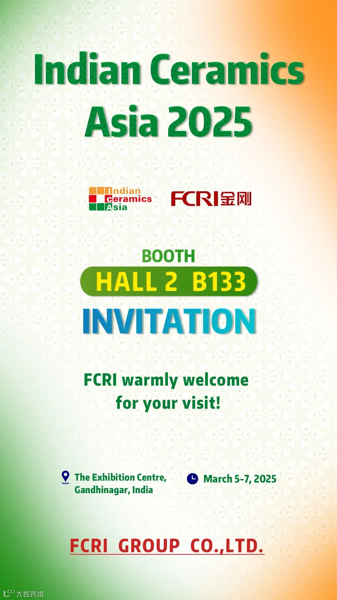 2025年3月5~7日,印度陶瓷工业展2号馆B133号展位,诚挚邀您莅临!