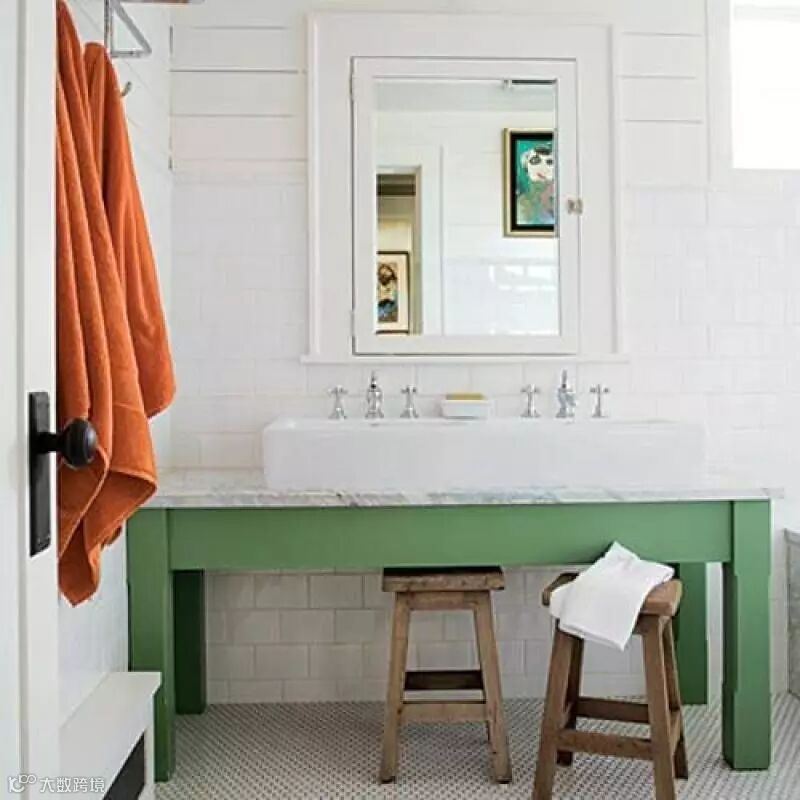 想要达到亲子共享浴室,又要让小朋友长大后也可以使用,全白的磁砖、地板或油漆等,以基本色块当装潢的底色,运用相框、布帘、画作、玩具、盆栽、椅子、盥洗用具等物品当做装饰物,每到一个年龄层就可以汰旧换新,少量的配件也可以让浴室维持整洁。