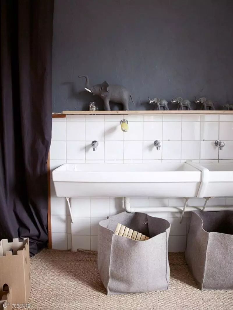 可爱的动物图纹和玩具,绝对会受到小朋友的欢迎,也能营造温馨和舒适感,不失为一个亲子共享浴室的装潢要点。