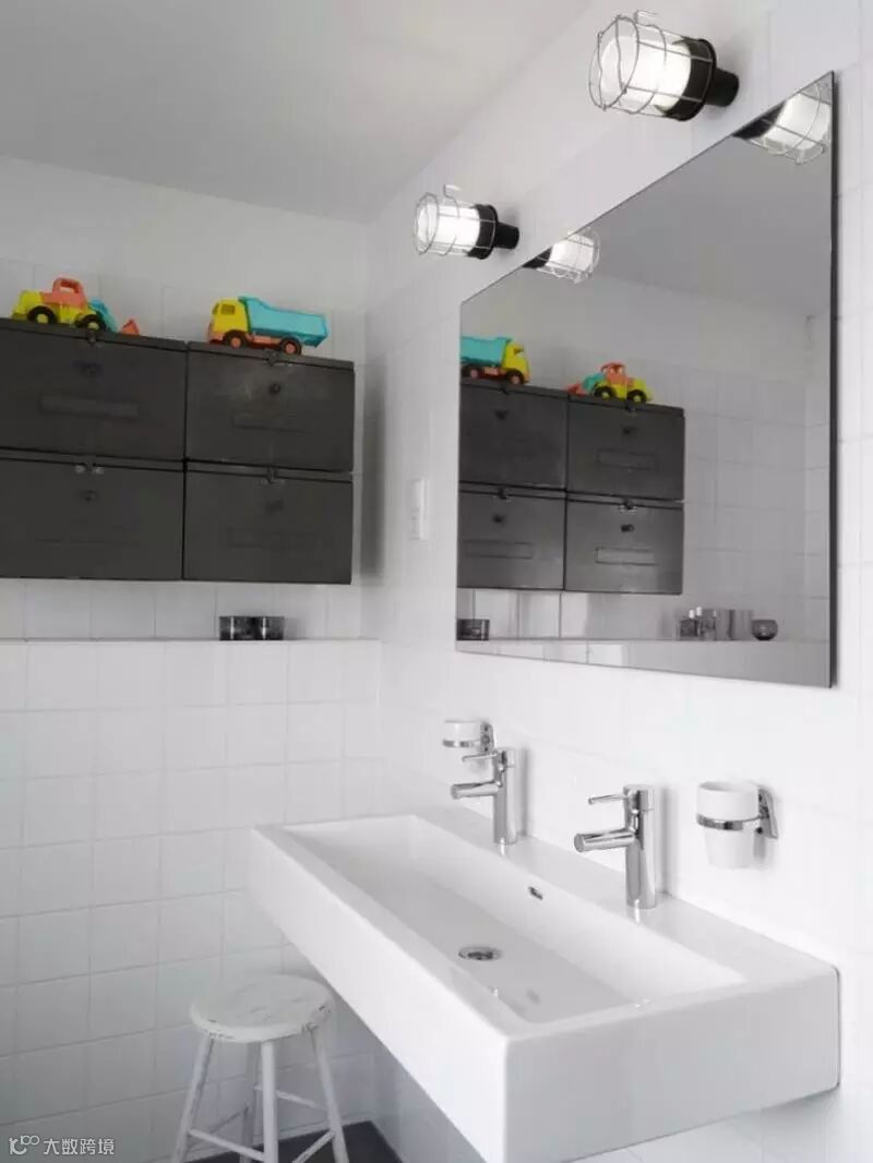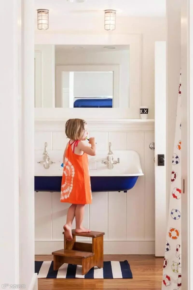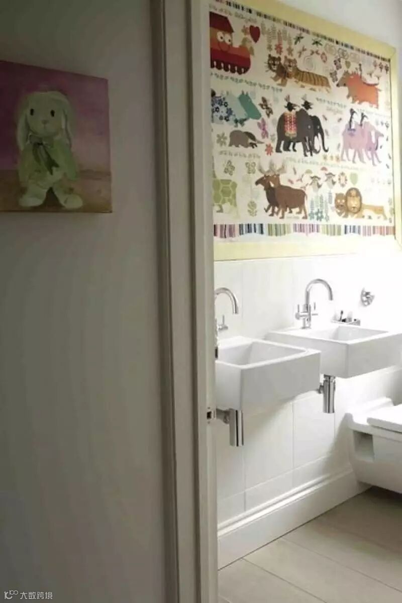 丰富的色彩能激发小朋友的头脑,使他们更有创造力,家中的气氛也不会死气沉沉;结合第3点的观点,装饰物、家具、盥洗用具等可挑多彩设计,例如毛巾、浴巾、漱口杯等,在一片白的装潢底色下,配件的颜色就会特别显著。