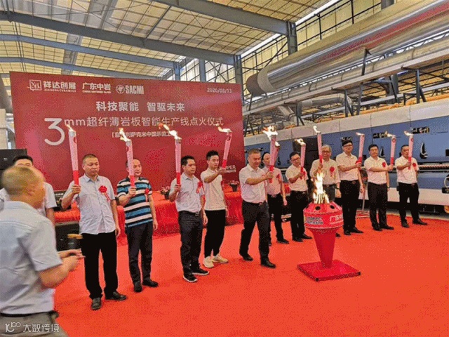 同一天,祥达创展集团“3MM超纤薄岩板窑炉点火仪式暨第五条进口超级岩板宽体窑开工仪式”在恩平生产基地盛大举行,该生产线采用意大利萨克米3.8万吨连续辊压机、多通道喷墨打印机及多层高效干燥窑等先进设备,是国内首屈一指的超大/超薄岩板生产线,可生产最大1600×3900MM、最薄3MM的超纤薄岩板产品。3MM超纤薄岩板凭借“大、薄、轻、易、韧”的特性,以及防火耐高温、高硬度、防污、耐磨、耐腐蚀等优秀的物理性能,让岩板的“全家居应用”不再只是理想中的描绘,而是已经有了实际产品的支撑。