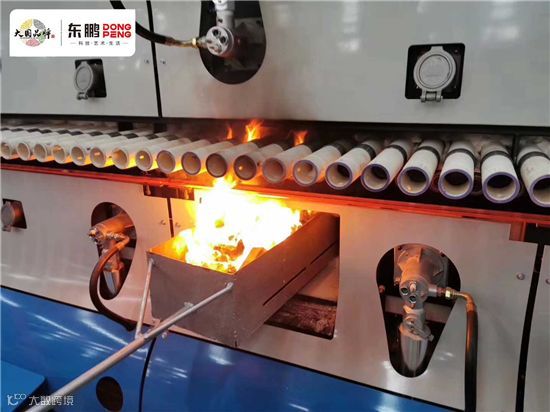据金刚集团营销事业部相关负责人介绍:“东鹏对质量要求很高,要求窑炉烧成产品平整度要好,砖面变形度控制在0.25mm以内,而市面上瓷砖平整度普遍在0.4mm左右。为满足客户要求,我们技术服务团队与窑炉生产商摩德娜公司认真研究,最终向客户推荐了GF98辊棒,该型号辊棒具有高温强度高、高温蠕变小、韧性好等优点;选用GF98辊棒,走砖平稳,烧成产品平整度较好。这次重庆东鹏点火的窑炉长420米,高温区就使用了GF98型号辊棒。”