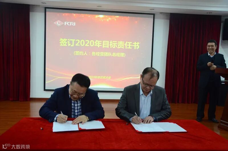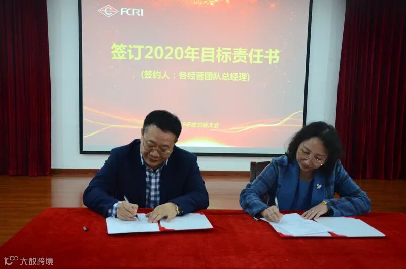 总结大会最后,冯斌董事长与各经营团队负责人签订了2020年经营目标责任书。