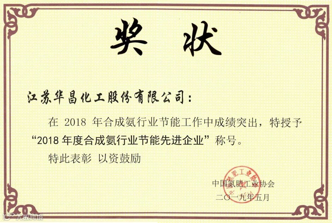 2019年5月21日,由中国氮肥工业协会主办的2019年氮肥行业工作会在安徽合肥举行。会上,华昌化工荣获“2018年度合成氨行业节能先进企业”称号。