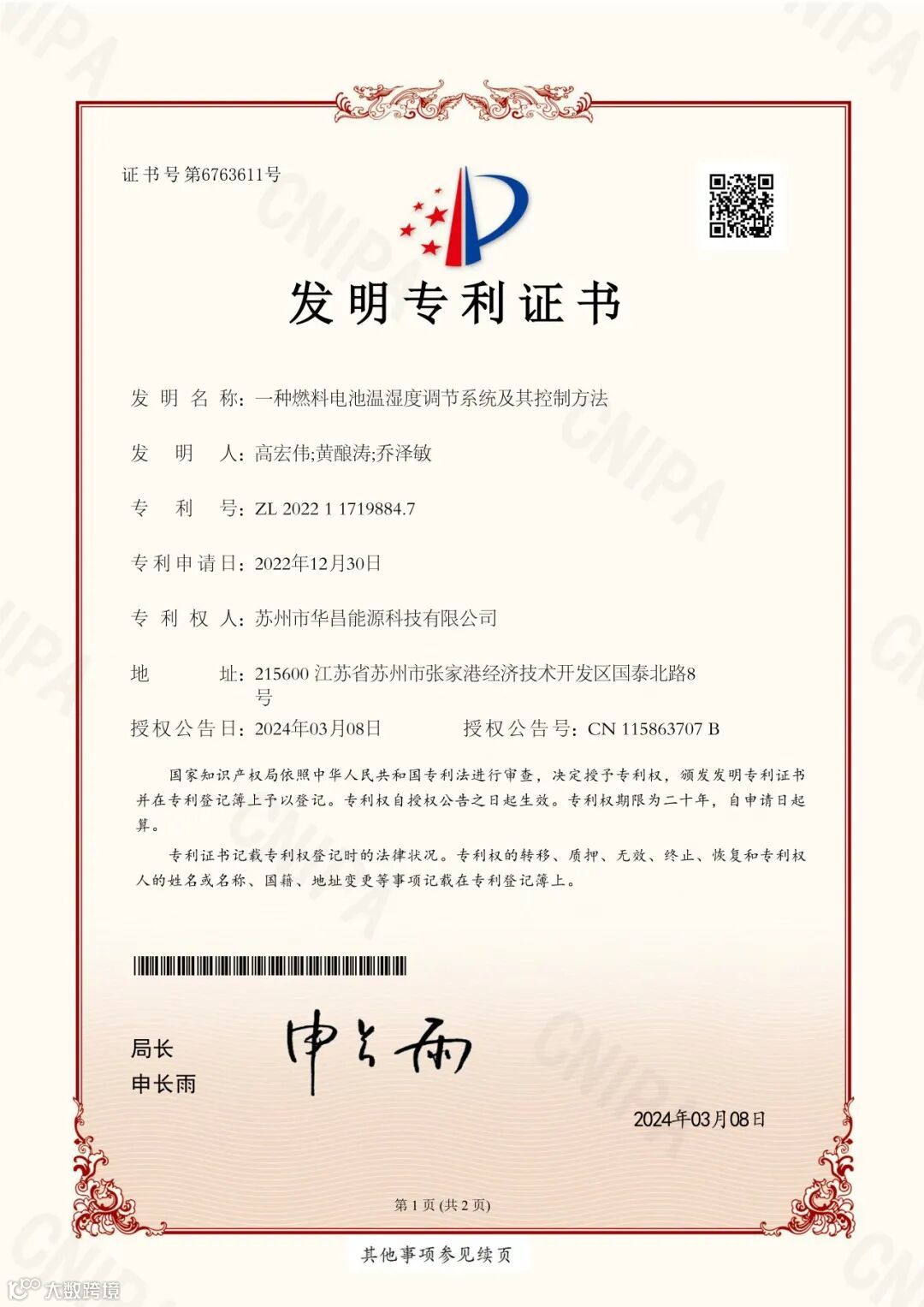 发明专利证书