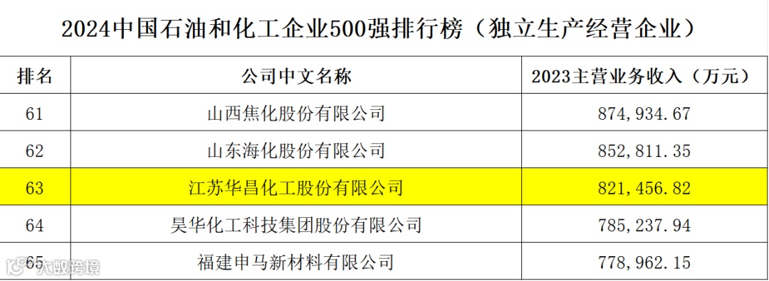 近日,在2024石油和化工企业销售收入前500家发布会上, 2024中国石油和化工企业500强等榜单公布。其中,华昌化工位列2024中国石油和化工企业500强 (独立生产经营企业)第63位,2024中国石油和化工上市公司500强第108位。