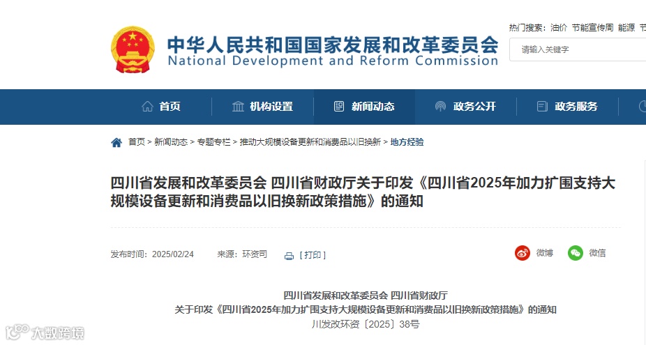 四川省2025年加力扩围支持大规模设备更新和消费品以旧换新政策措施