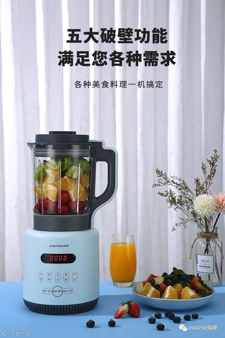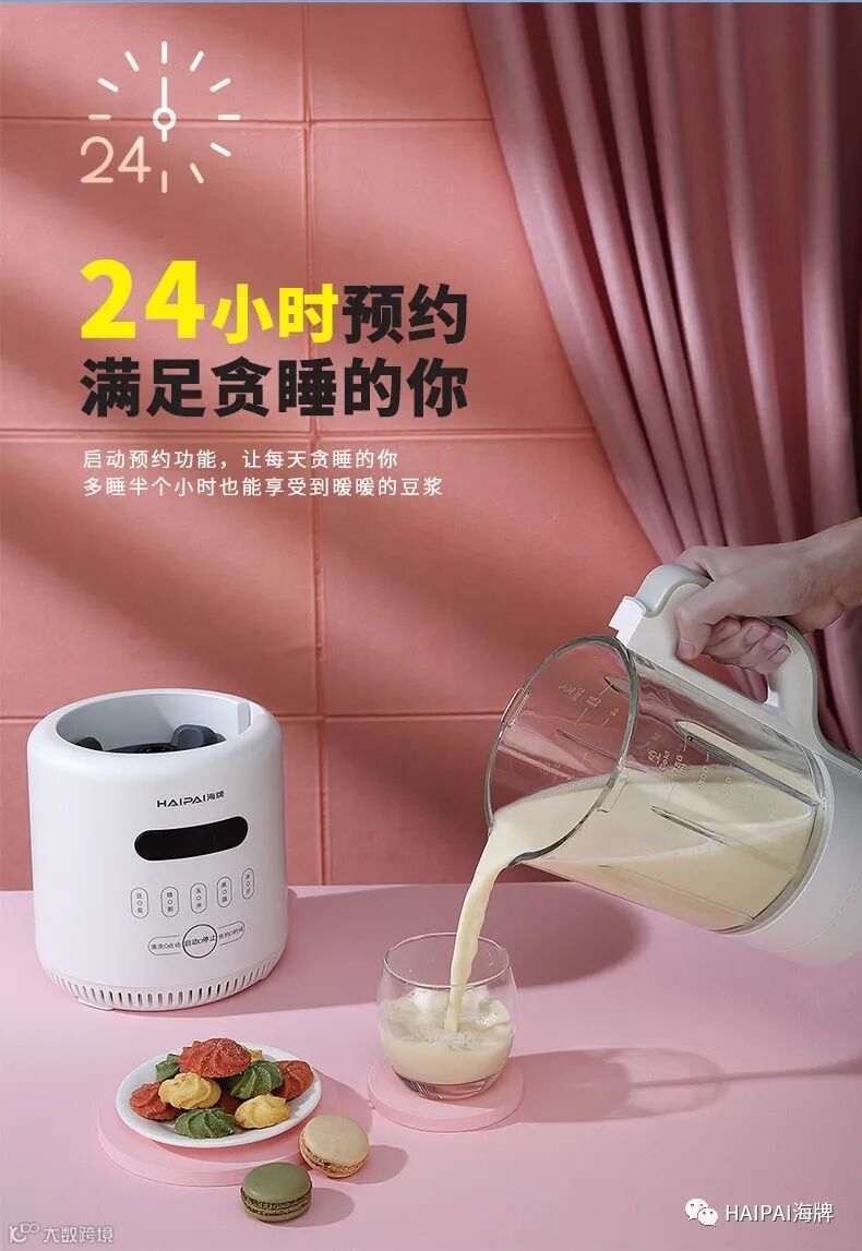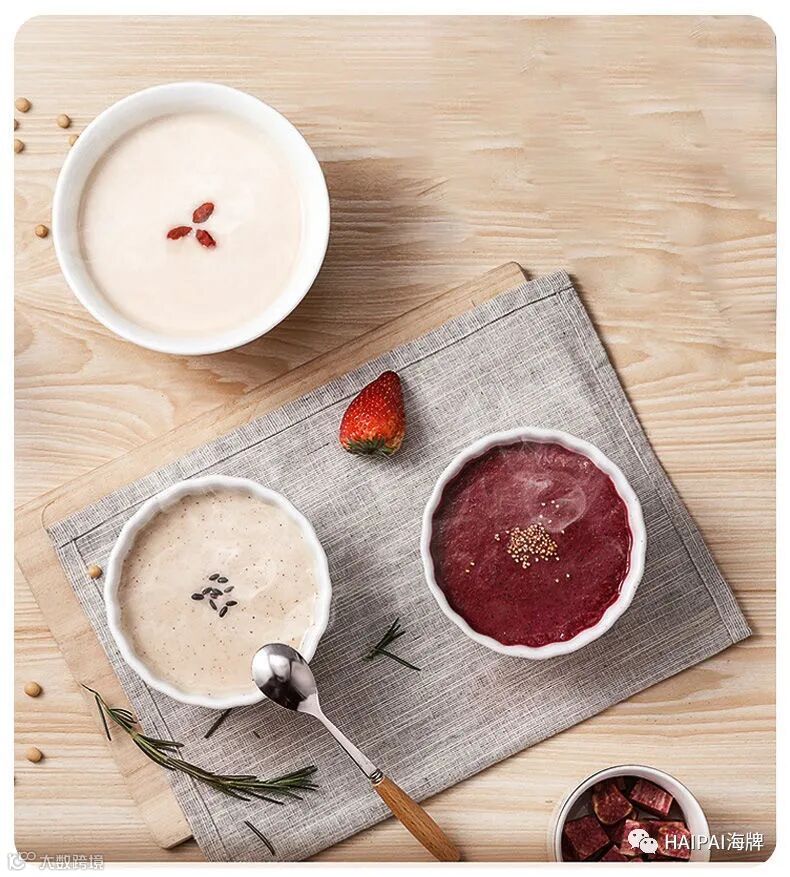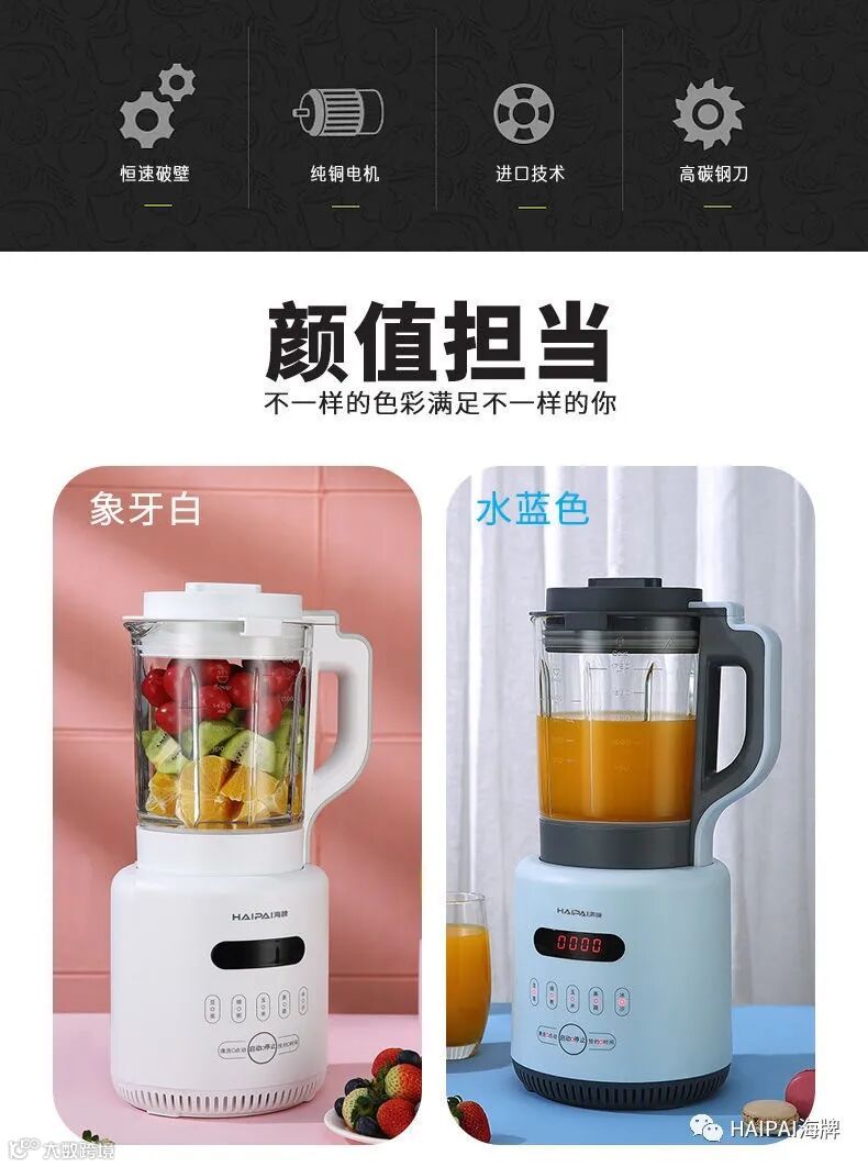 亮点5:多功能集于一体,打豆浆,打果汁,做冰沙,打玉米汁,煲浓汤,破冰,磨粉,自清洗等无所不能。