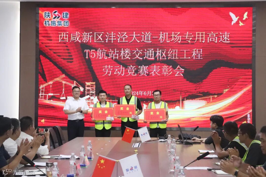 6月4日晚,为鼓励一线职工饱含干劲、激扬斗志,促进项目如期高质量完工,集团西咸新区空港新城沣泾大道-机场专用高速-T5航站楼交通枢纽工程召开劳动竞赛(第一周)表彰会,集团副总经理冯新生出席会议并讲话,集团工会副主席弋戈主持会议。