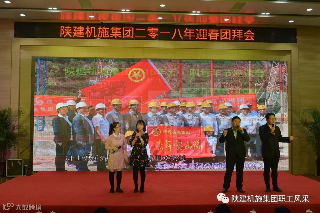本次团拜会有新创意,18个基层单位各自准备了3分钟视频,展现2017年取得的成绩、优秀项目、先进人物、工作亮点、普通员工生产生活等,内容丰富,观看性强,既相互学习交流,又多层次展现了陕建机施人的风采。