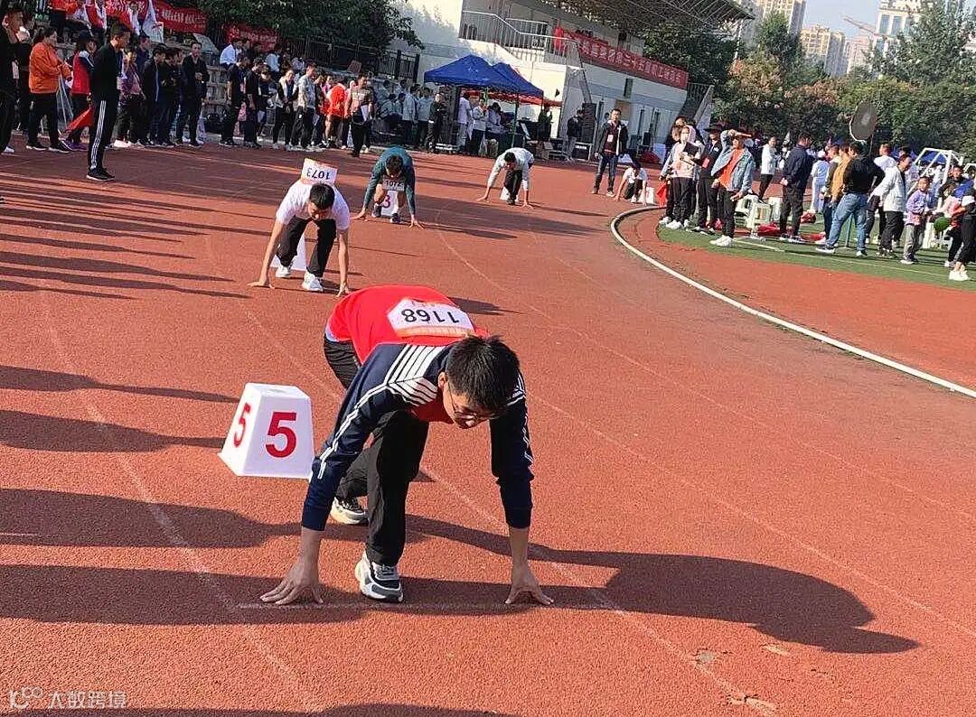 他们奔跑在红白相间的跑道上