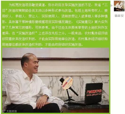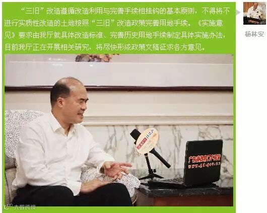 省国土资源厅副厅长杨林安做客政府微博访谈,解读“三旧”改造政策话你知