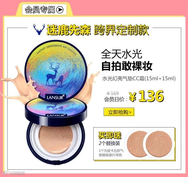 迷鹿水光气垫买1送2!会员福利仅限2天!