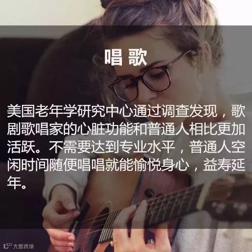 排第一的竟然是唱歌哦!唱歌时,气息在体内循环起到按摩的作用,带来的好处是任何其他运动都代替不了的,它的好处有:增强心肺功能、保持大脑活力、提高免疫力、改善肠胃健康等-