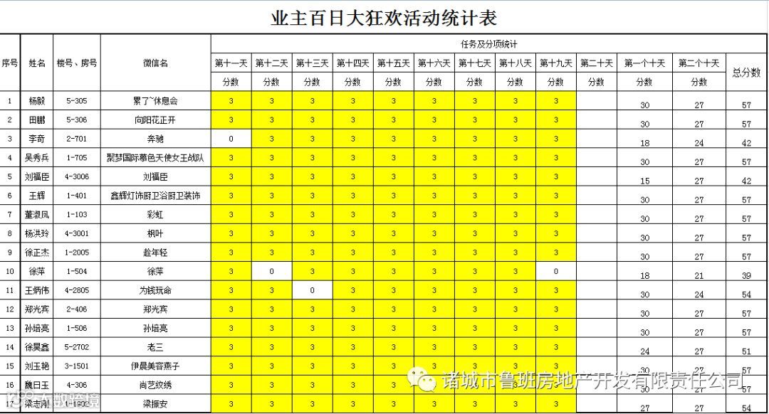 ③.活动结束后,依据业主得分,分高者胜。