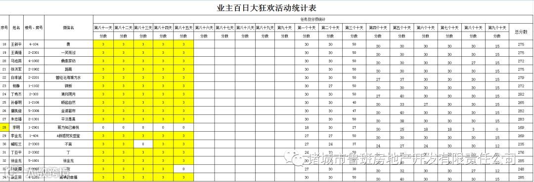 ③.活动结束后,依据业主得分,分高者胜。