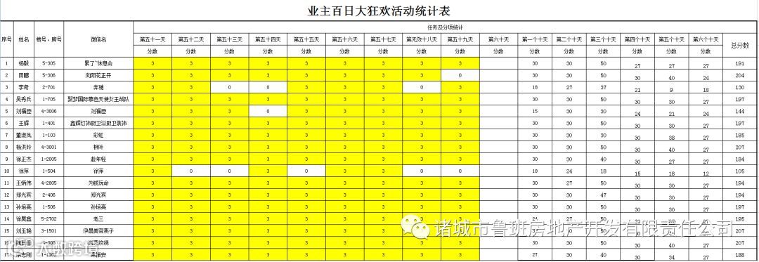 ③.活动结束后,依据业主得分,分高者胜。
