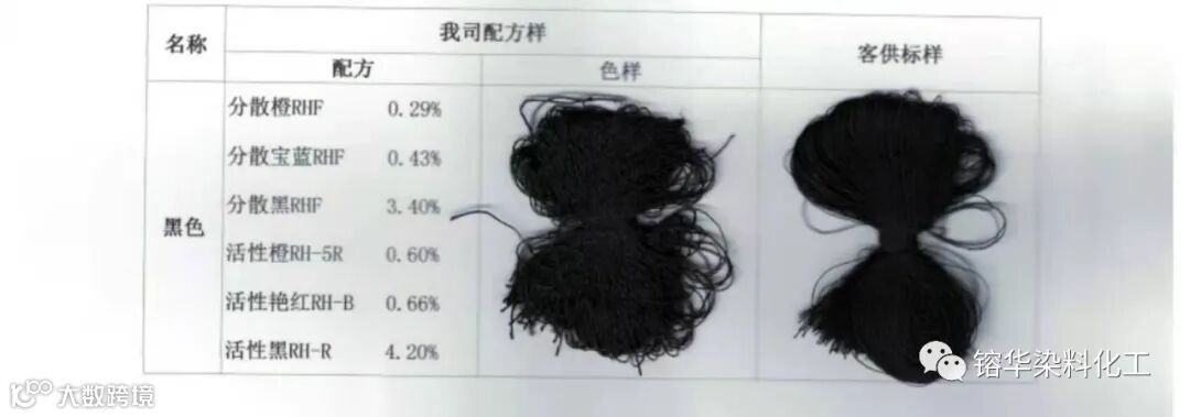 要求:按客供黑色样,选择染料在客供的棉/二醋白纱线上仿黑色,并测试GB/T3912-2008水洗和GB/T3920摩擦牢度。