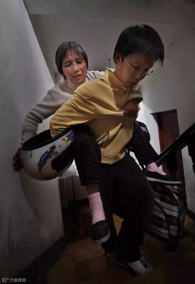 母亲老年痴呆,智商仅仅相当于1岁多的孩子。儿子就天天背着母亲上楼、下楼,日夜陪伴。
