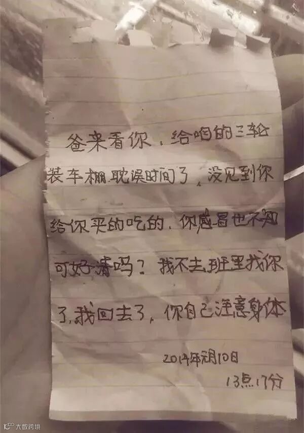 一位父亲去学校看望自己的儿子,带了一箱牛奶和一大包好吃的,还留下了一张这样的纸条……