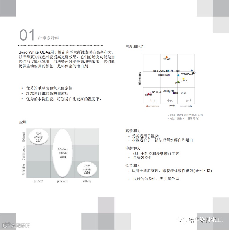 导读:SYNO WHITE荧光增白剂京仁KISCO荧光增白剂,优秀的重现性和色光稳定性,纤维素纤维的高增白效应,