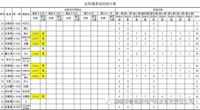 7月1日汇总参赛成绩,按完成天数计算