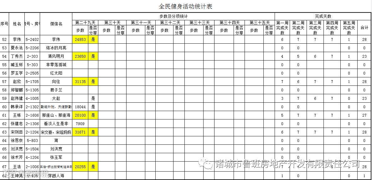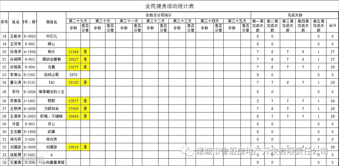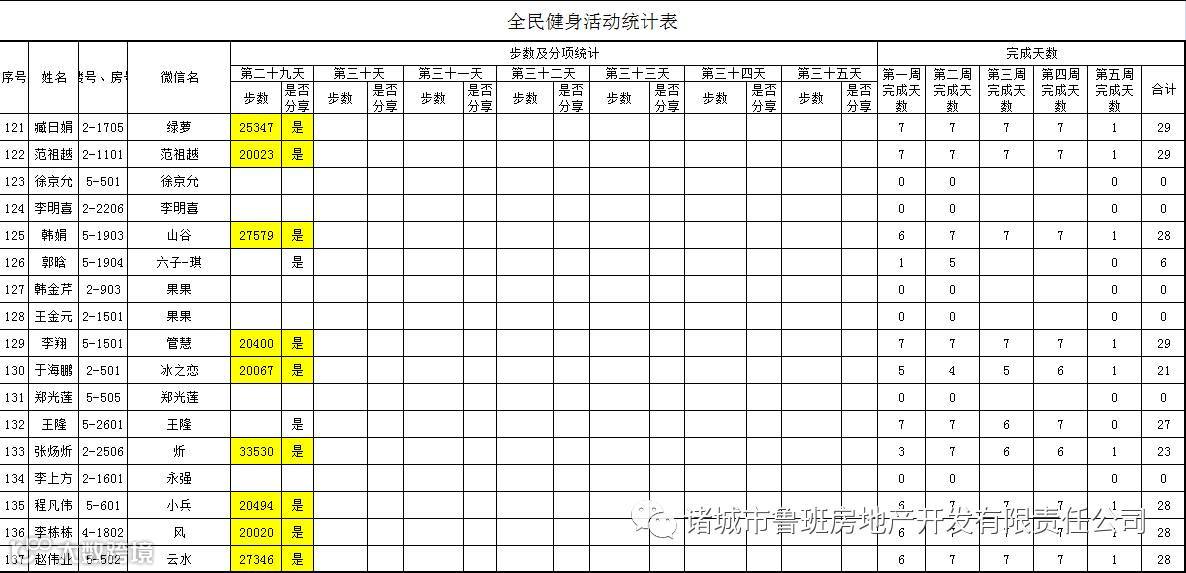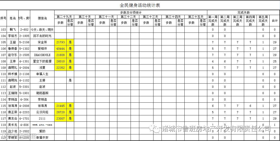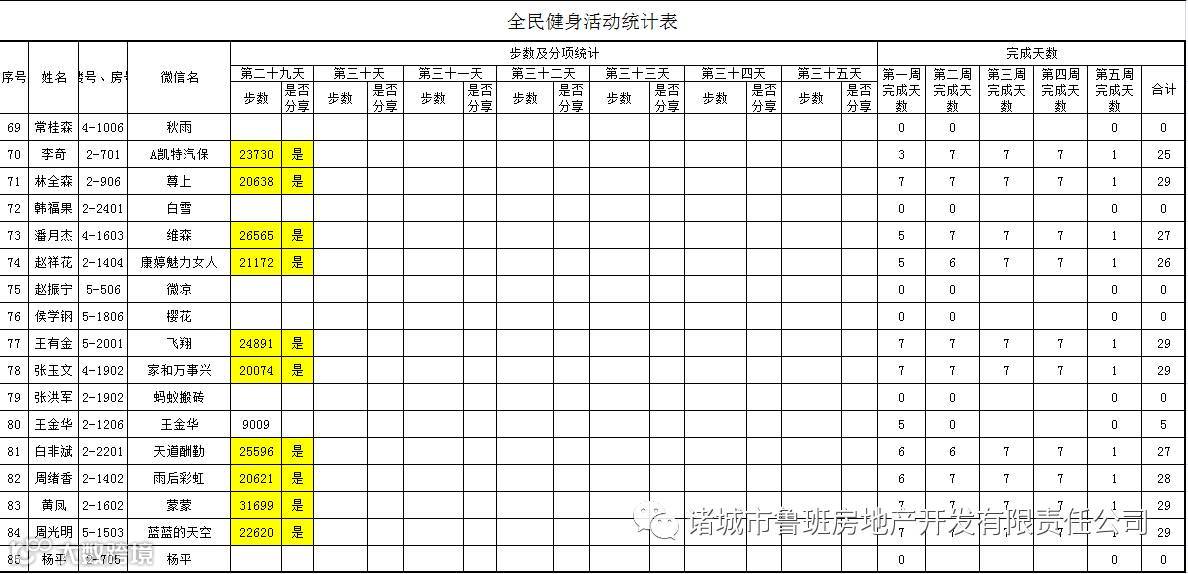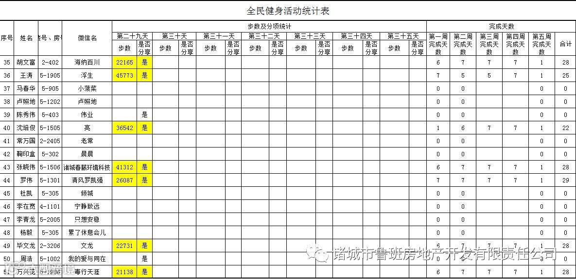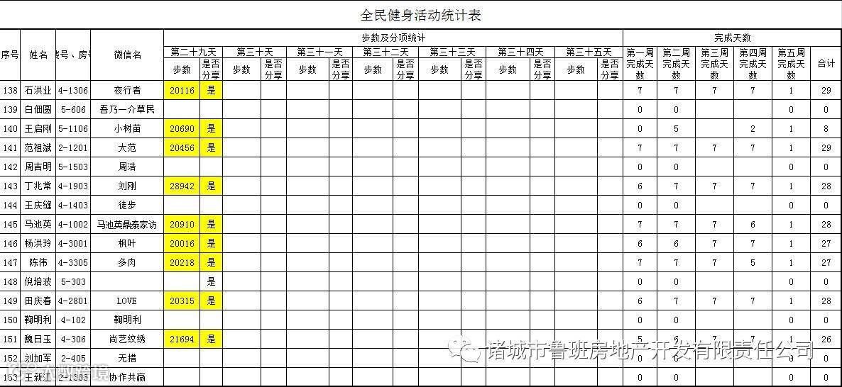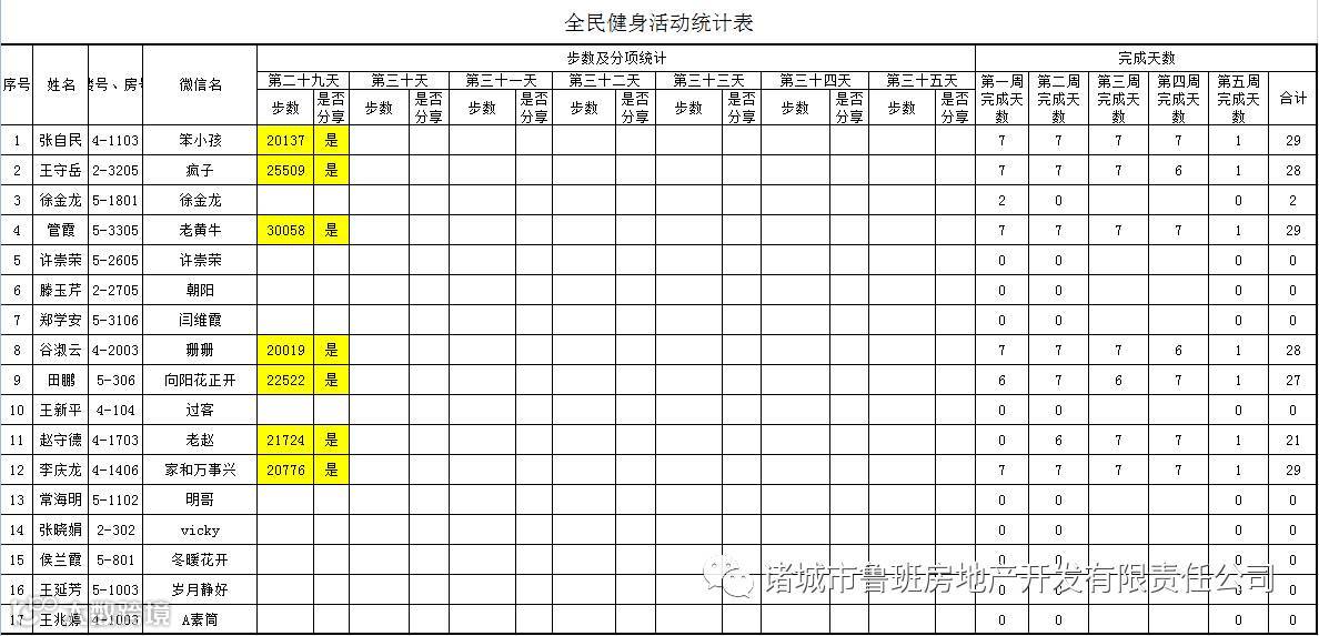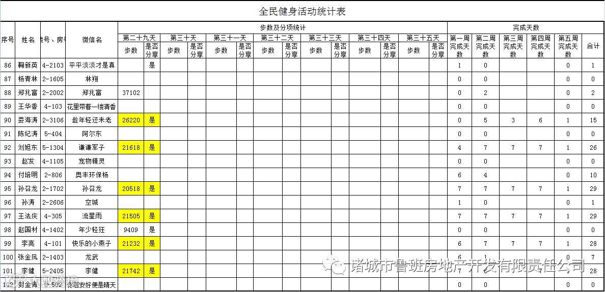 7月1日汇总参赛成绩,按完成天数计算