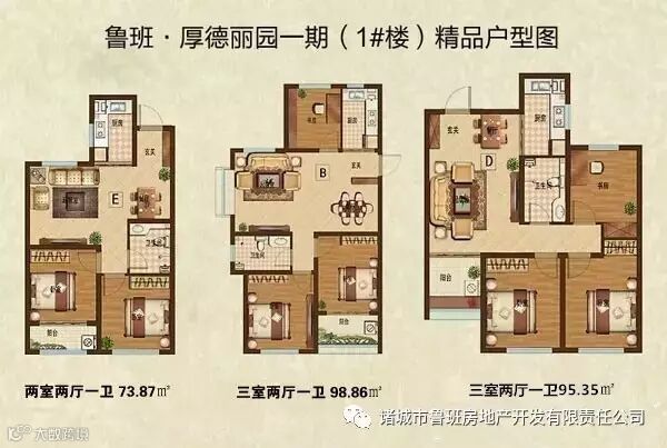 3#楼主推建筑面积73㎡套二以及95.35㎡和98.86㎡套三户型,这三个户型均南北通透,布局合理,是鲁班房地产公司多年研究的匠心之作。