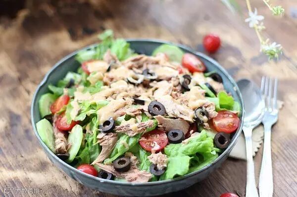 罐头金枪鱼、蘑菇、圣女果、芦笋、沙拉酱