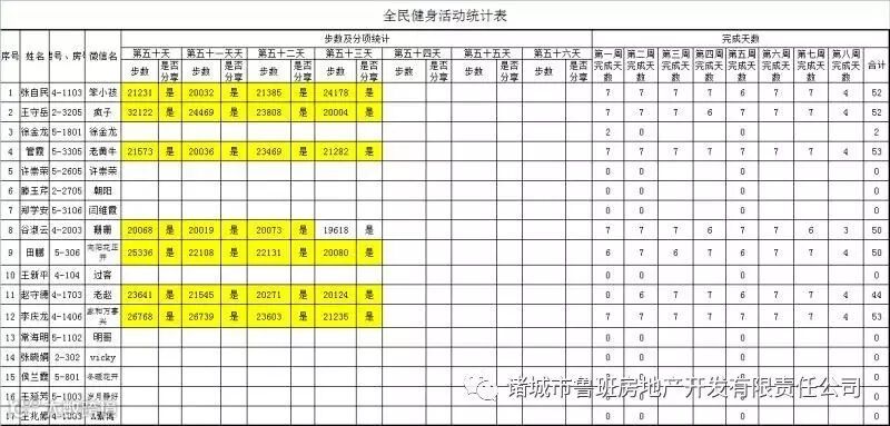 7月1日汇总参赛成绩,按完成天数计算