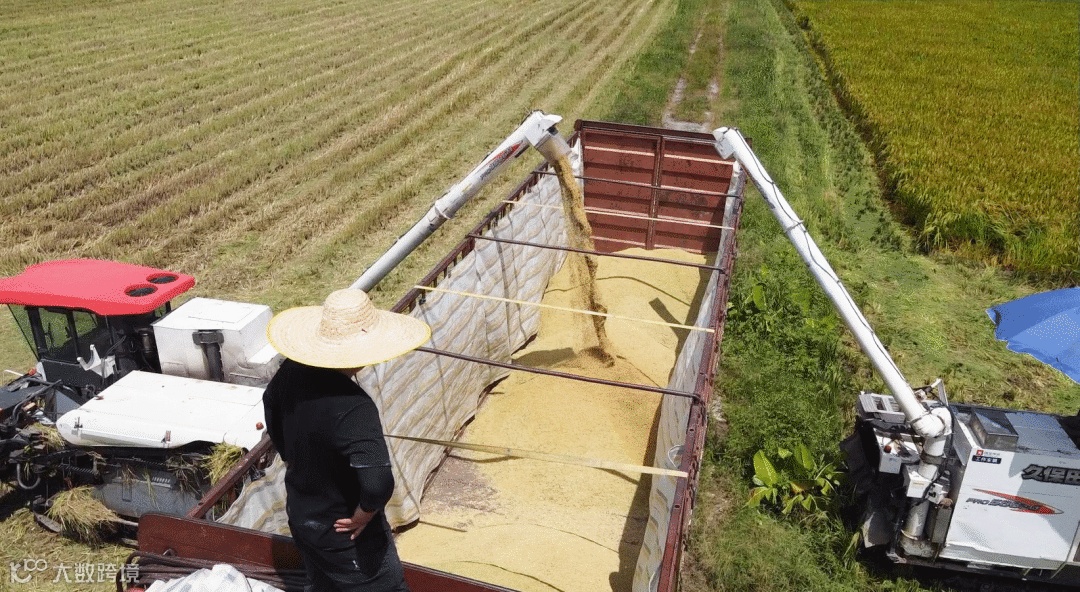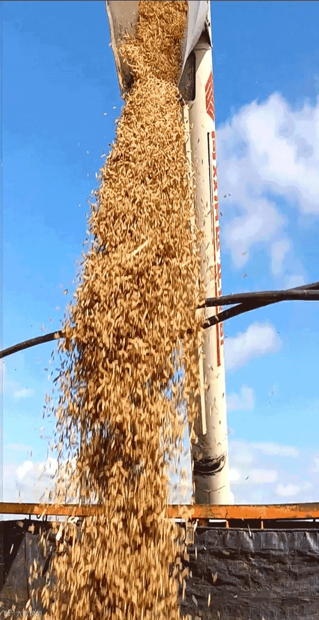 在烈日炎炎的田野里,几台收割机正在来回运作,运粮的卡车早已候在田间地头,等待满载而归。