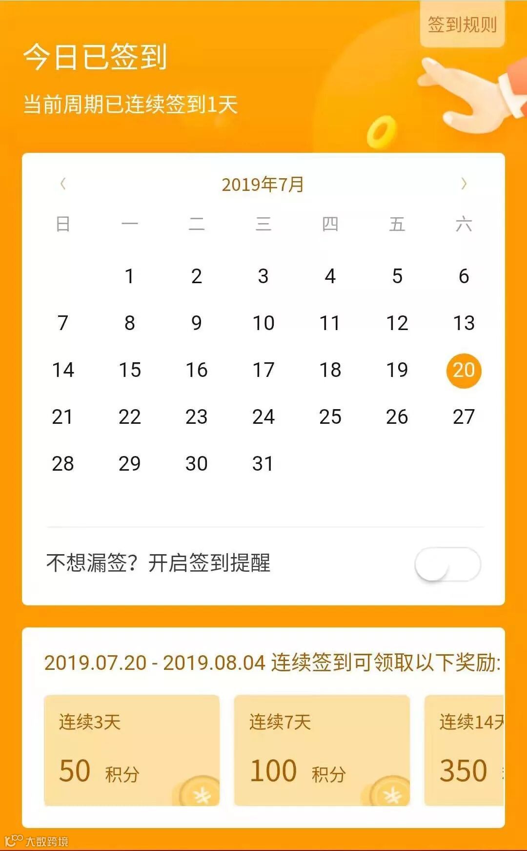 从今日开始每天到商城打卡签到