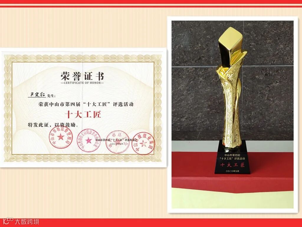 2020年9月24日晚,以“匠心独运,绽放湾区”为主题的中山市第四届“十大工匠”评选活动在中山市文化艺术中心举行颁奖仪式。广东毅马集团有限公司“广东省高端钢铁管桩端板工程技术中心”副主任尹定红当选为中山市第四届 “十大工匠”。