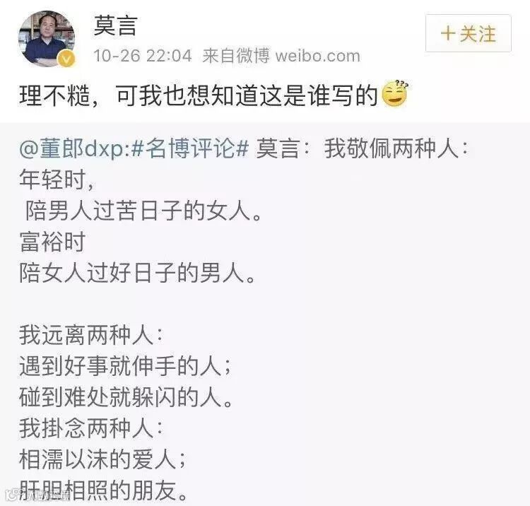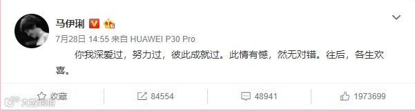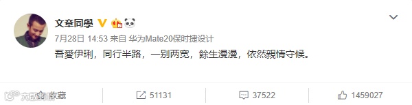 怎么样,离个婚还这么有情调。这不是重点,重点是,其实两人的两段微博,是细心酝酿出来的。【一别两宽,各生欢喜。】这是一句被拆分的话,被马文二人各自选用一句,也是很有心思的,也正好契合“离婚”这个事件。