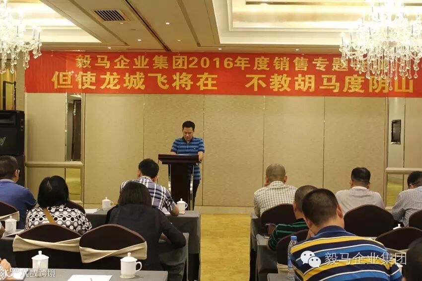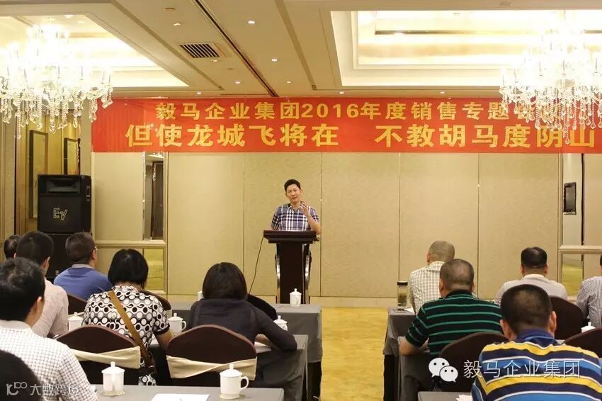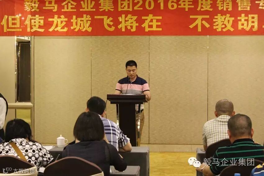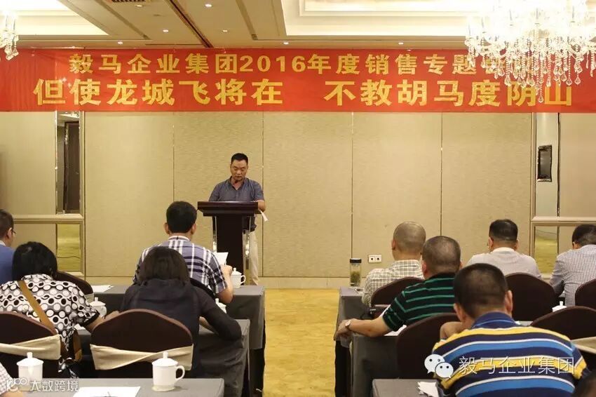 2016年8月10日,毅马企业集团2016年度销售工作会议在“新丝绸之路经济带”的关键节点-甘肃省兰州市胜利召开。集团董事长、各公司总经理及参加第一批西北游的管理人员共同出席了本次会议。本次会议共分为两个部分,第一部分为集团各公司销售系统负责人围绕会议主题作命题发言,第二部分为董事长讲话。会议的主题为“但使龙城飞将在,不教胡马度阴山”。