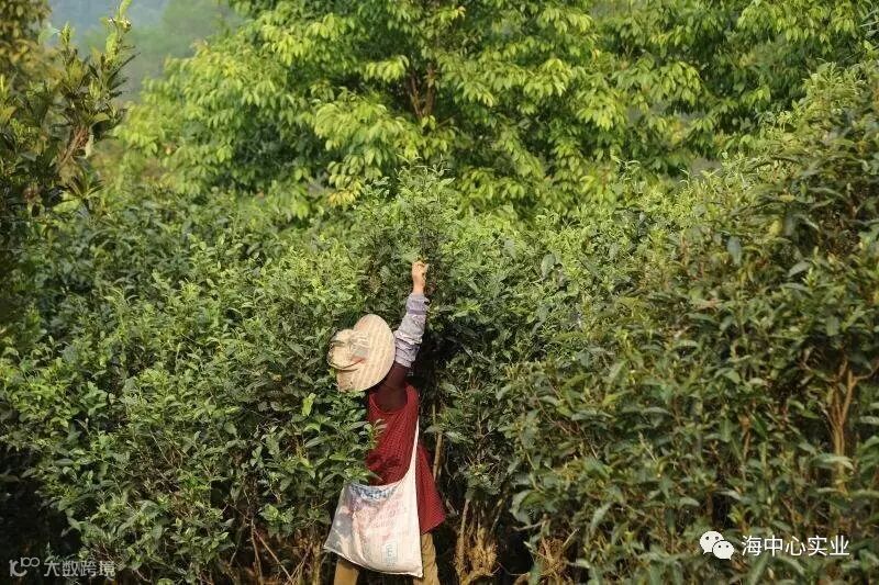 我也好不容易爬到树上,也跟着姐姐一起开始采茶。