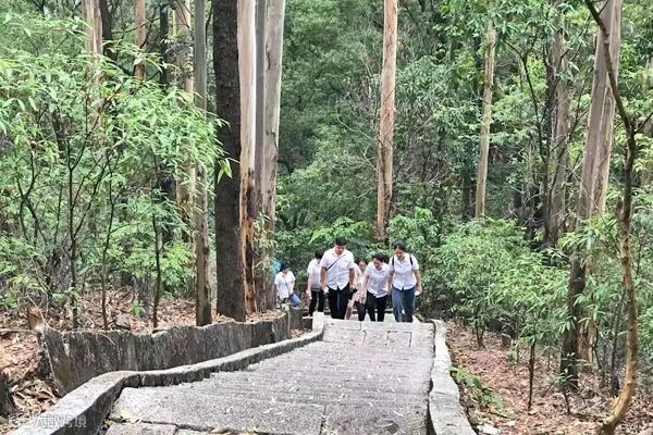 分发水果和饮用水后,开始了自由爬山环节。一路上,大家有说有笑,工作中的烦恼和困顿,在此刻都烟消云散。