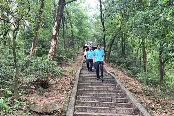 天公不作美,刚走几分钟,就下起了小雨。有些同事一度想返回,最终还是跟着大部队坚持走向山顶。