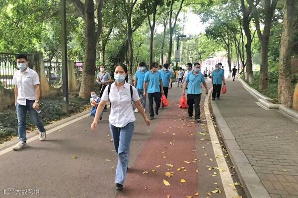 人员集合拍合影,宽广的旗峰正门广场上,统一穿工衣的合昌人,也是一道亮丽的风景。