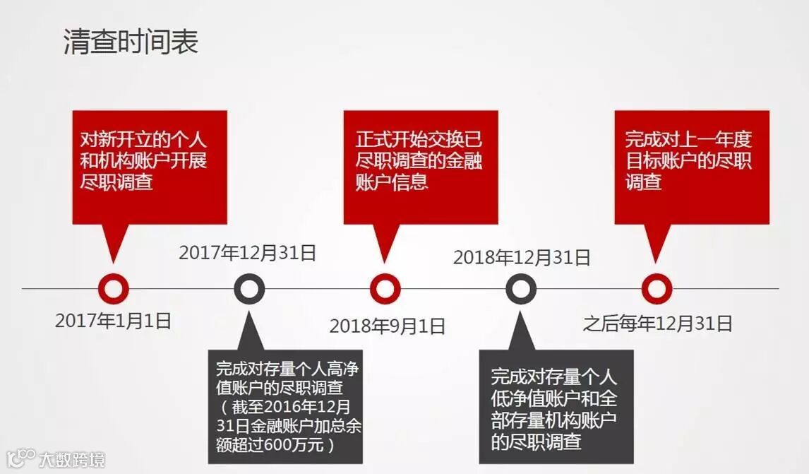 2、2017年12月31日,完成对高净值账户的尽职调查 (截至2016年12月31日金融账户加总余额大于600万元人民币)。