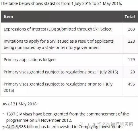 从2015年7月1日到2016年5月31号,283人递交EOI投资意向书;228人获得州政府担保资格并被邀请;179人向移民局递交申请;新政后有20人签证获批,进一步证明了澳洲政府对这一重大投资签证的态度,前景非常乐观。