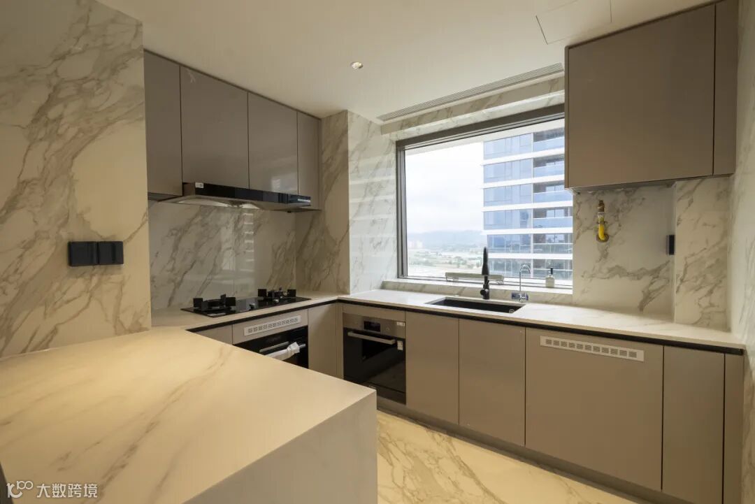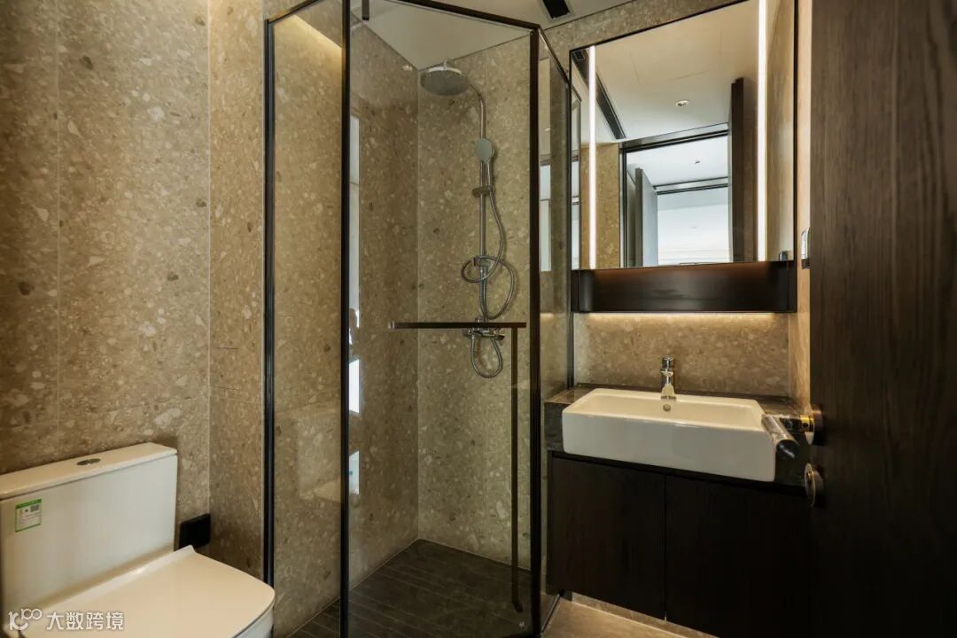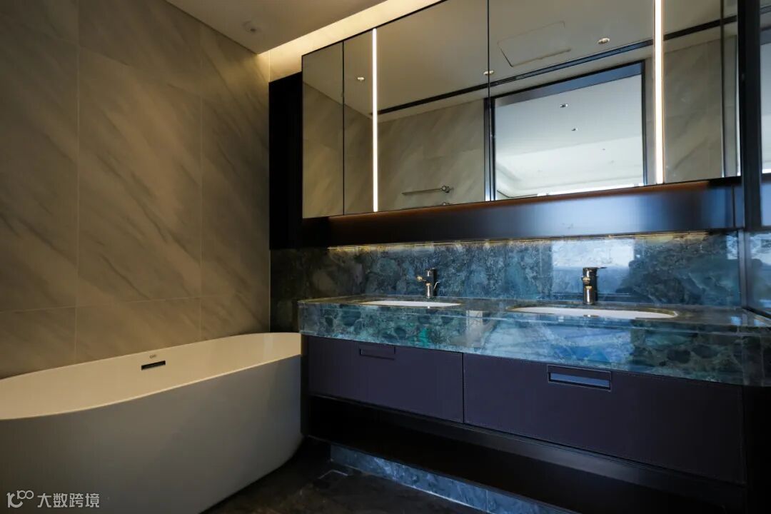 项目全面执行华润高标准装配式体系,电视背景墙、地面、主卫等空间采用多种奢石铺装,工艺繁复,项目经理安广廷带领团队严选材料,优质高效完成拼装作业,打造兼具秩序感、奢华体验与生态和谐的居住空间。
