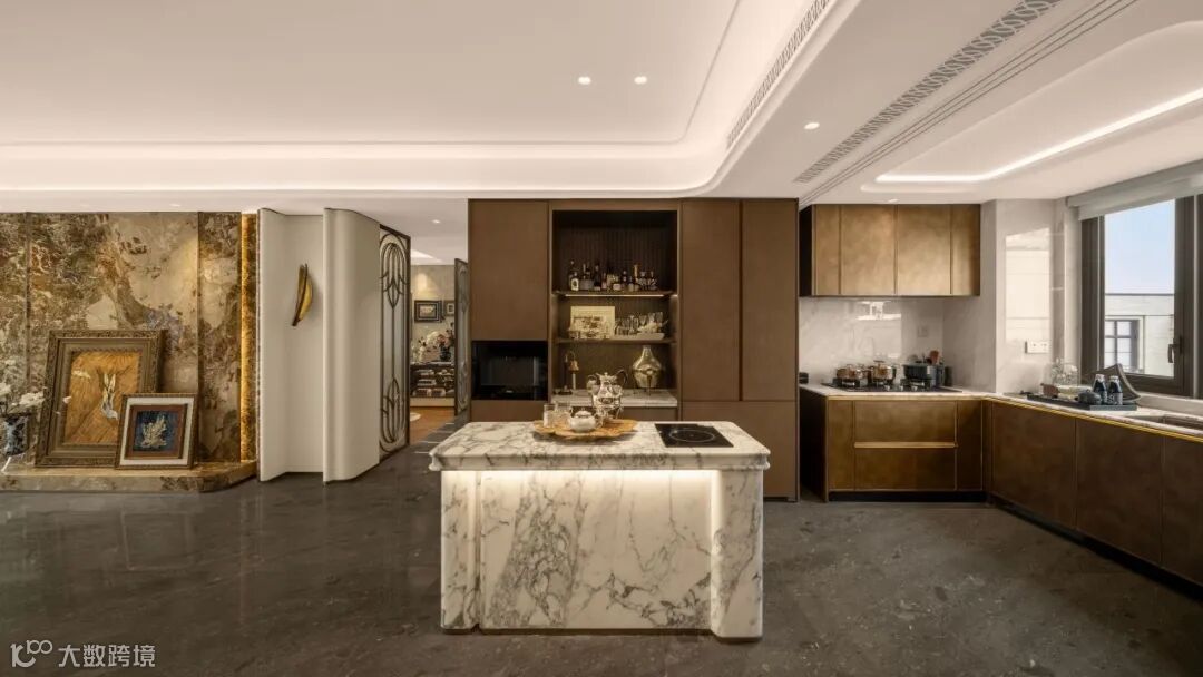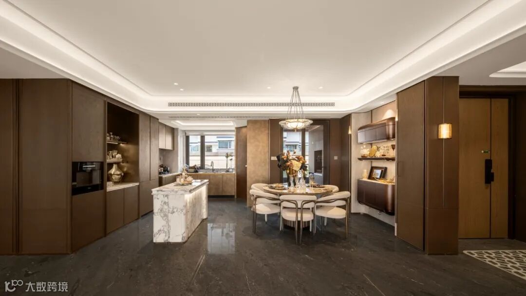 室内遵循小家化、全场景理念,通过大面宽户型设计,最大化引入自然光;吊顶摒弃繁复装饰,应用定制化一体成型蜂窝不锈钢,确保结构稳定与美观统一,打造酒店级隐逸体验。