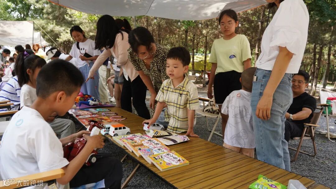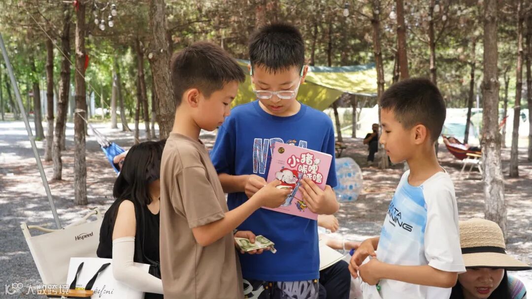 孩子们在摊位前热情推销商品,小顾客穿梭于各个摊位间,挑选着心仪的物品,兴奋、满足和快乐洋溢在每个孩子的脸上……