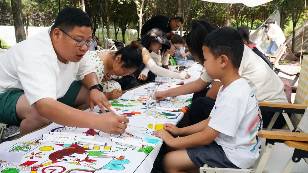 家长和孩子们发挥想象与创意,将内心的喜悦之情与艺术潜质,浓缩在手中的画笔之上,顺着纹路,一笔一画,在十米画卷上认真细致地“描绘着”属于自己的童真与快乐,涂上他们眼中最美的色彩。