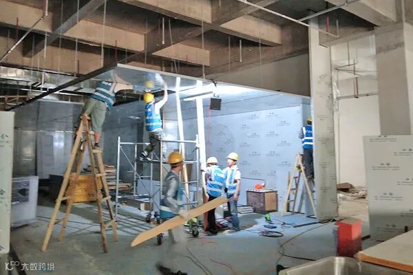 看,他们爬上近两米高的木梯,互相配合协作,一点点地完成净化车间吊顶工程;