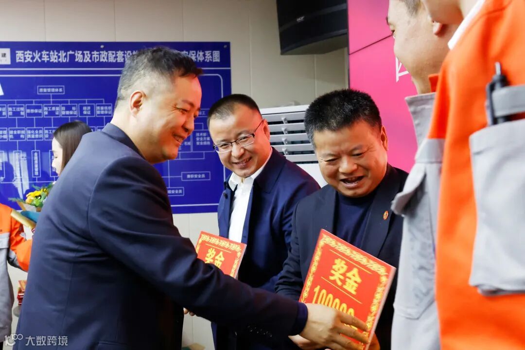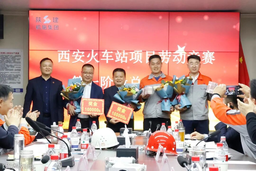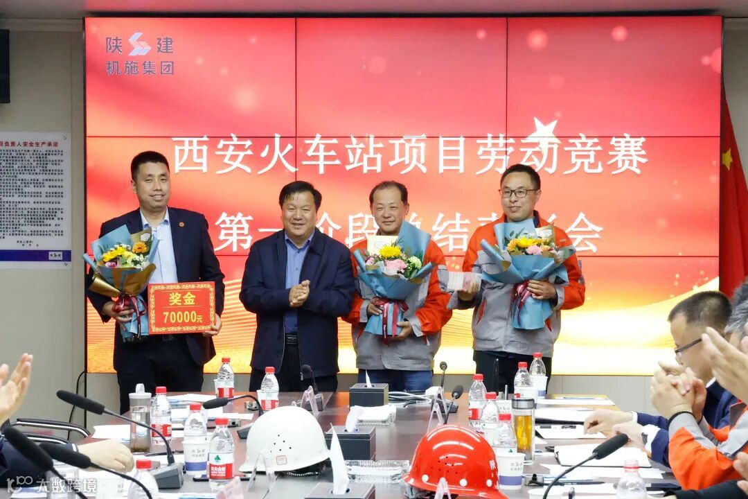 于宗让、徐永宏、贾新发及各部门负责人和项目部负责人分别为获得劳动竞赛第一阶段优秀建设单位的第十工程公司、第四工程公司颁发证书及奖金各10万元,为第六工程公司颁发证书及奖金7万元;为获得先进个人奖的常瑞、卢江涛、宁和松、马振兴、刘翔等10名职工分别颁发证书及奖金各3000元;为获得优秀建设者的任志勇、陈军差、曲将足、范歌鹏、刘明明、王明明等10人分别颁发证书及奖金。