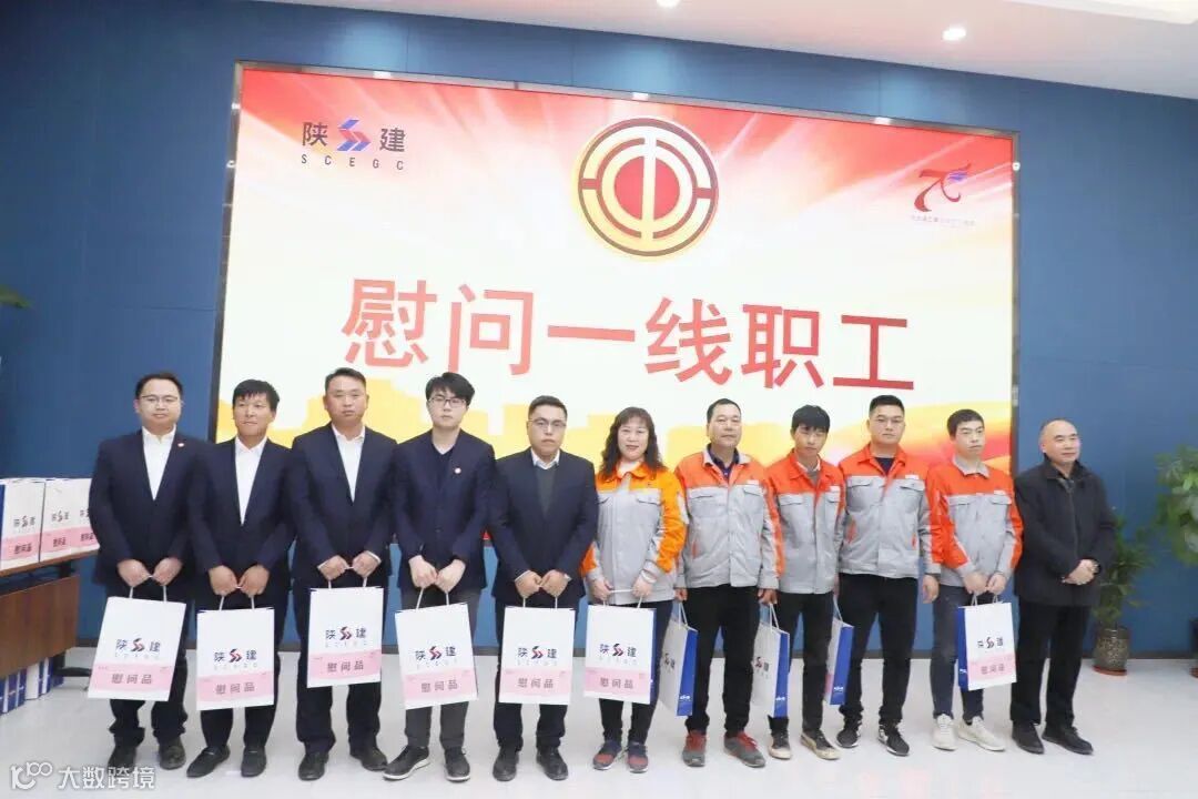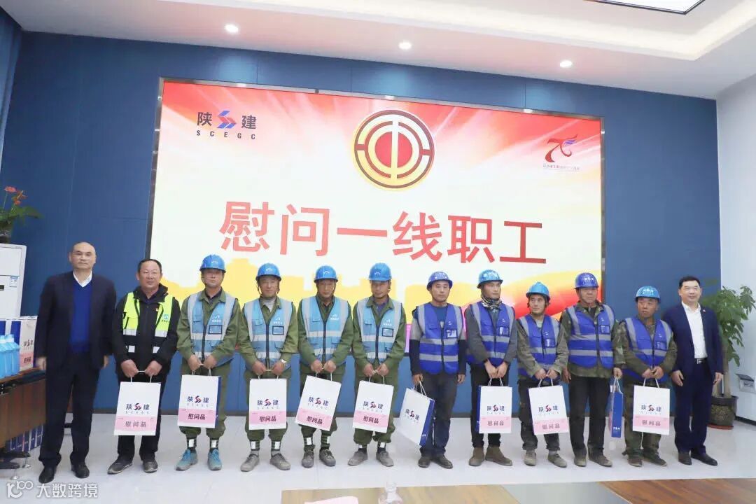 陕西建工控股集团工会副主席刘宗文,陕建一建集团纪委书记、工会主席袁勇,陕建机施集团副总经理、陕建钢构集团党委书记、董事长王政向项目一线人员送上了暖心慰问品。