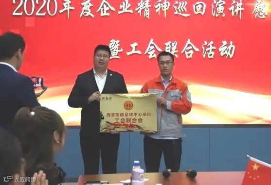 活动上,陕建控股集团工会副主席刘宗文为西安国际足球中心项目工会联合会进行了授牌。
