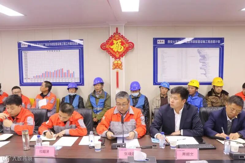 西安火车站北广场及周边市政配套工程建设运营项目党支部书记、项目经理张晓辰对本阶段各参建单位目标完成情况进行通报。